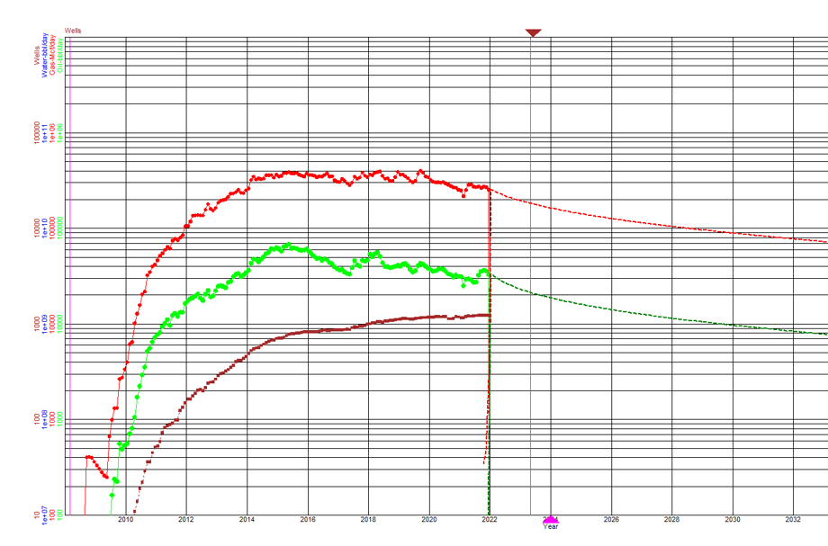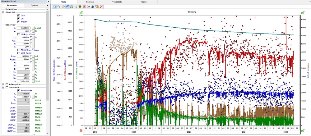 In additional to traditional decline curve analysis, WDVGE uses Rate Transient Analysis (RTA) to forecast well production via analytical models. These models incorporate physics into the equation as opposed to a purely empirical method and can also serve as an informative complement to full numerical simulation.