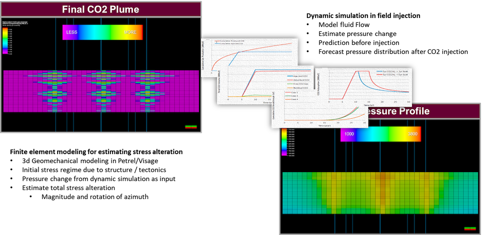 WDVGE is experienced in the modeling of carbon storage including using compositional reservoir simulation in Eclipse or Intersect to estimate plume size and caprock integrity. With high resolution petrophysics models constructed from advanced well log data, we can simulate layered storage intervals and quantify volumes of CO 2 injected into various zones.